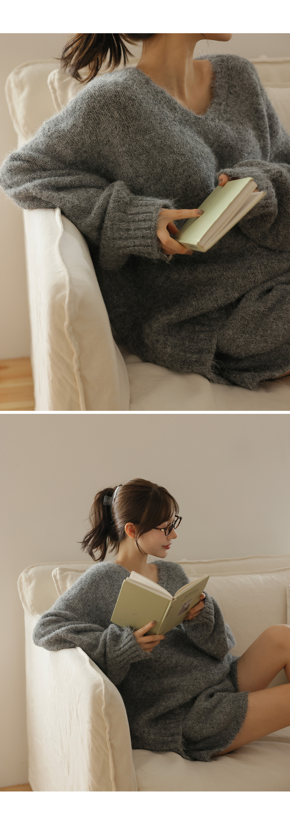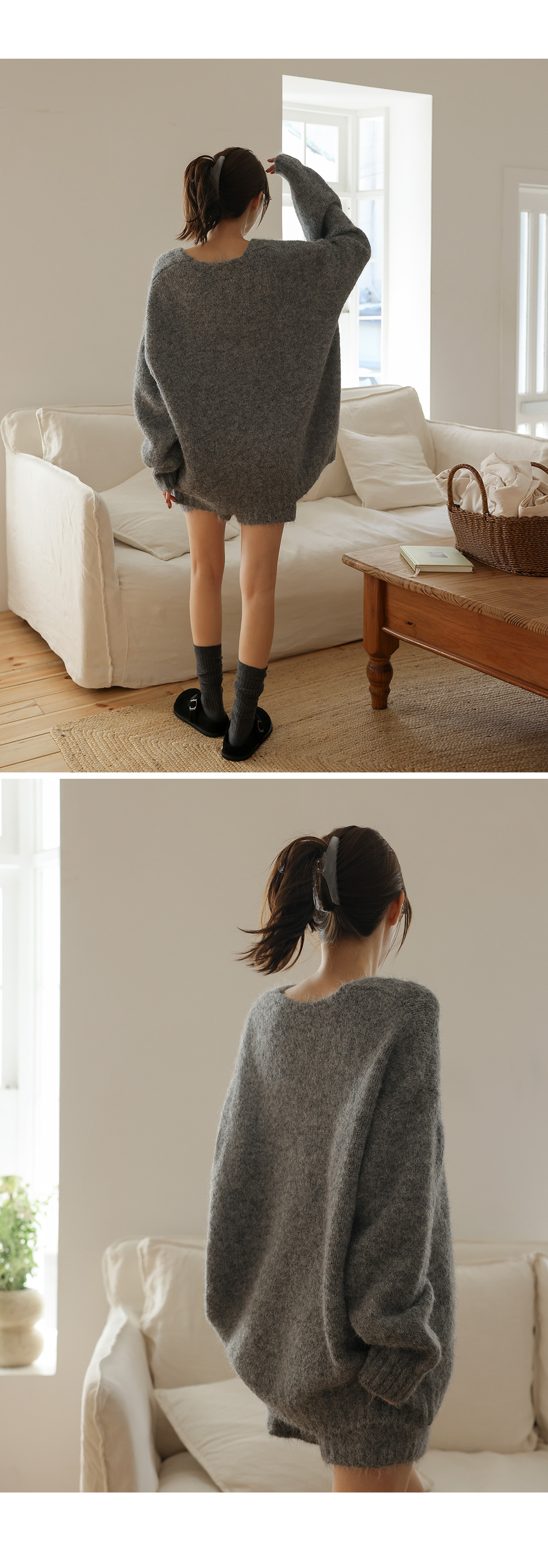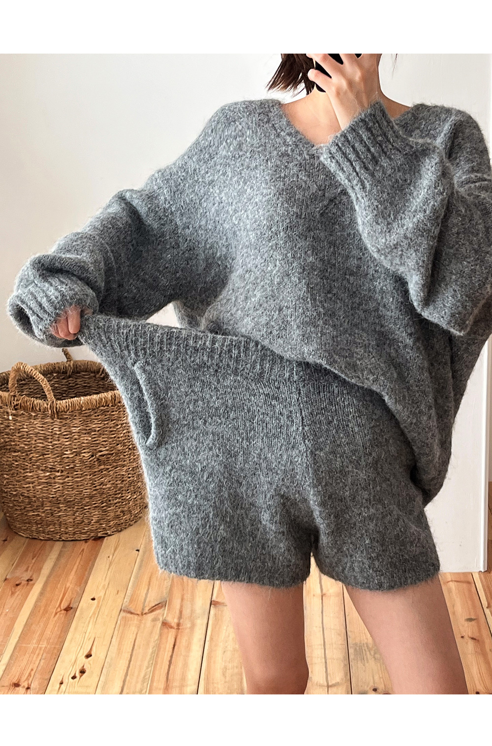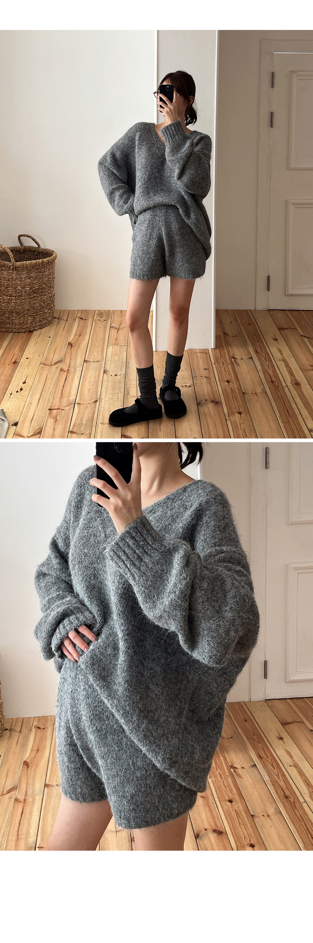 Maternity*V-neck knit shorts two-piece set (for postpartum use)
