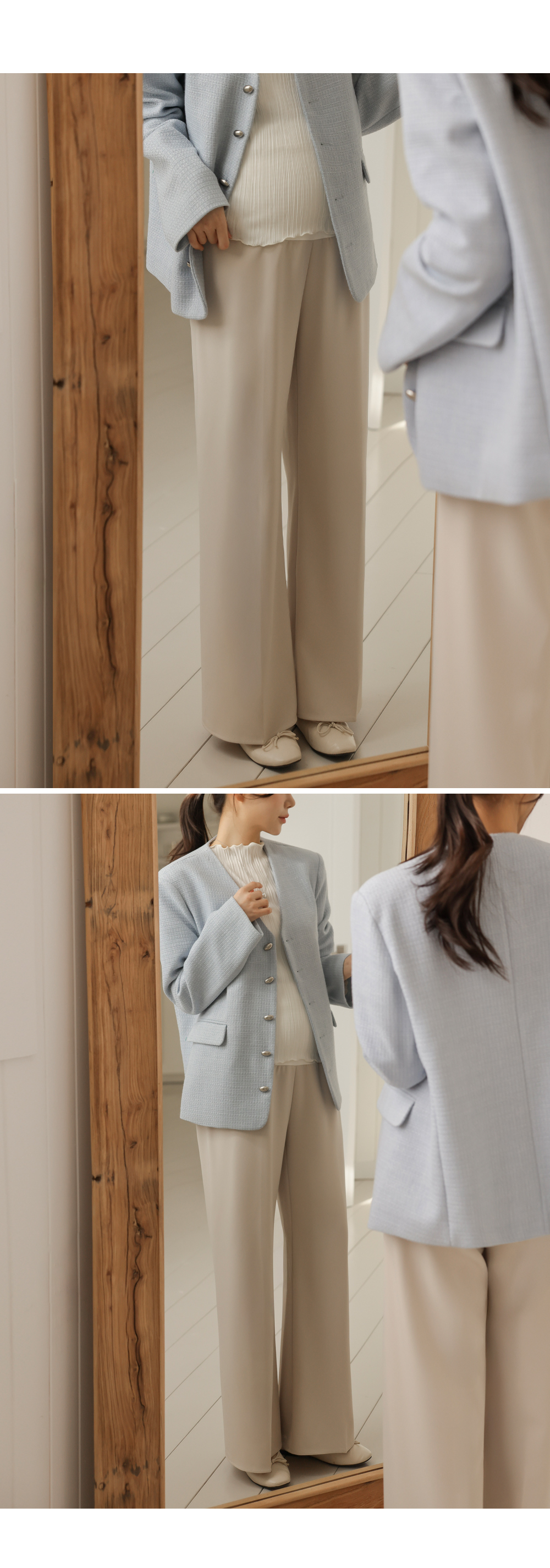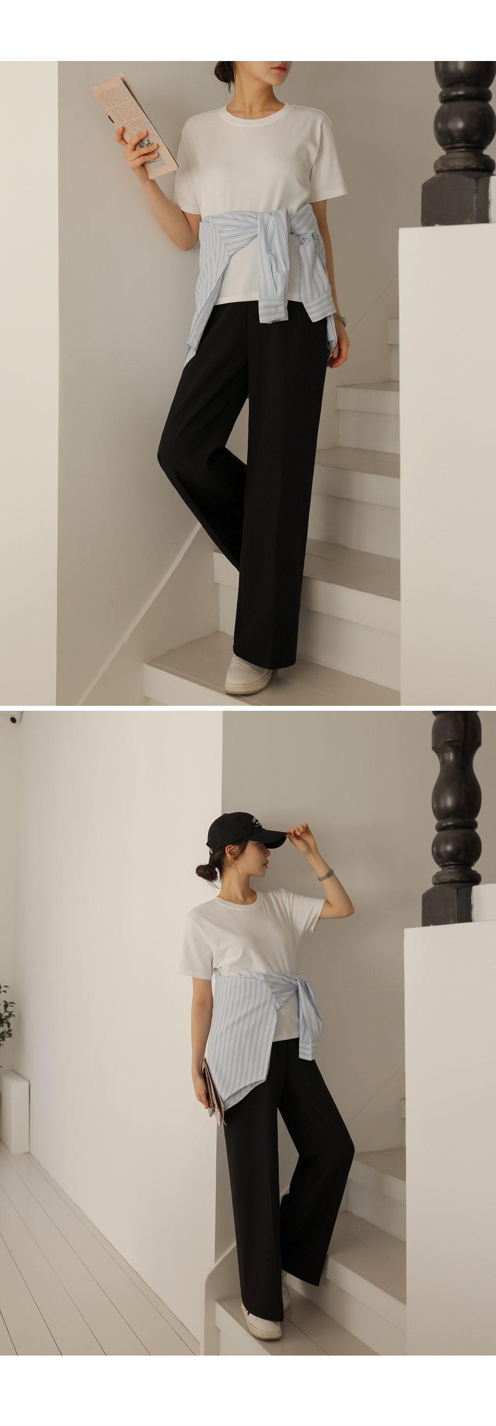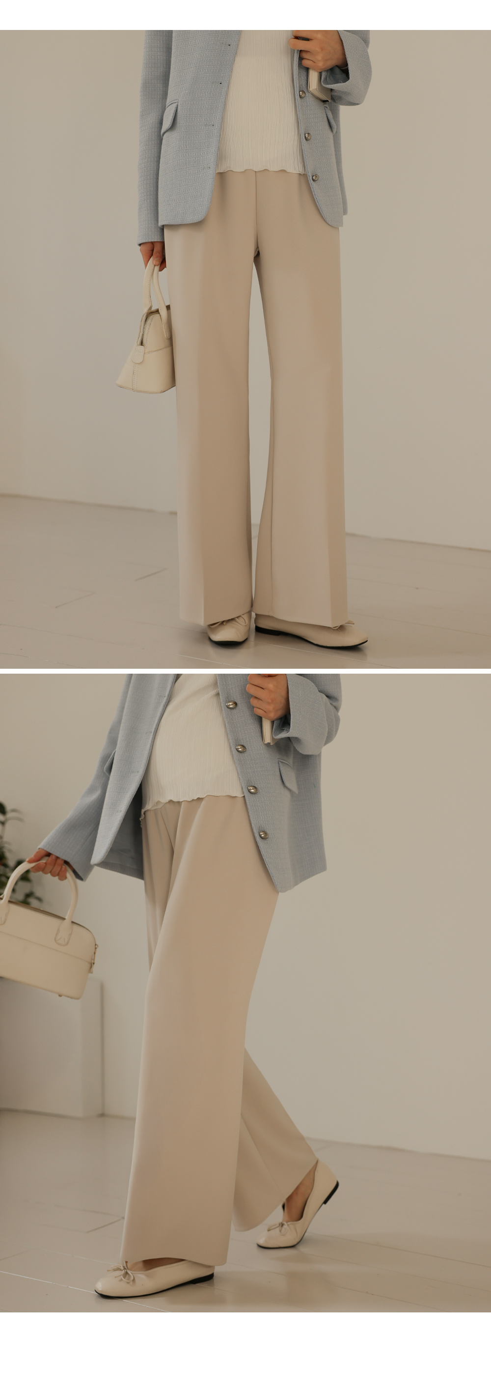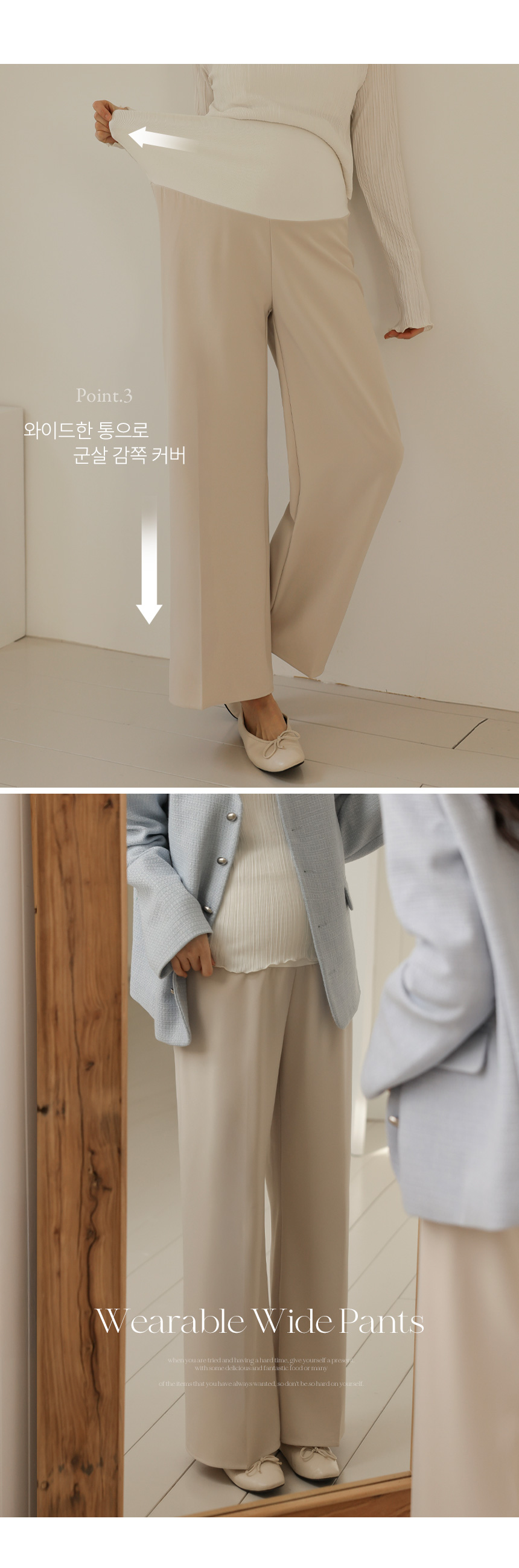Product information하체 군살을 커버해주는 와이드 핏 디자인 입니다.롱기장으로 다리가 길어보입니다. 부드러운 복대로 배가 편안합니다. 핀턱 주름으로 깔끔한 아웃핏 입니다. 다양한 룩에 활용하기 좋은 슬랙스 입니다. |