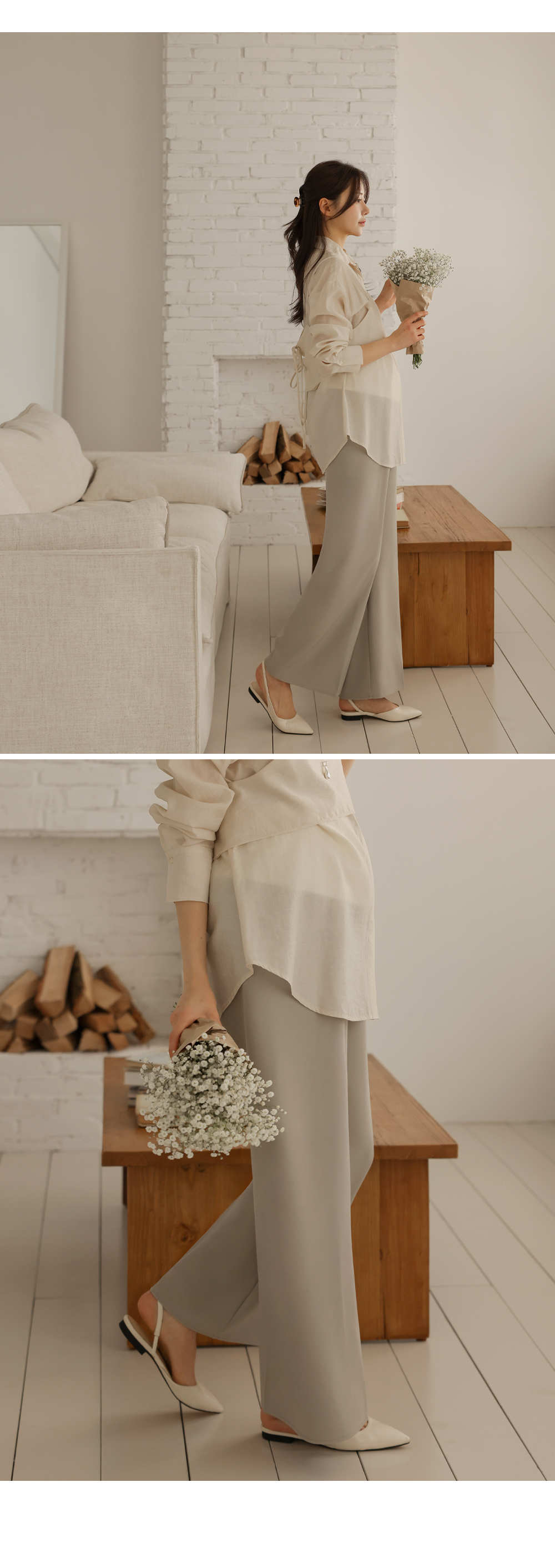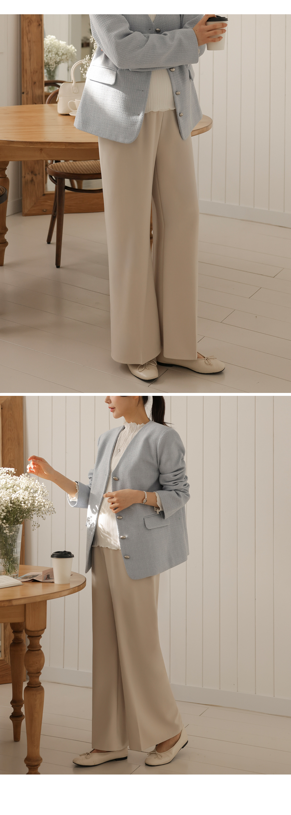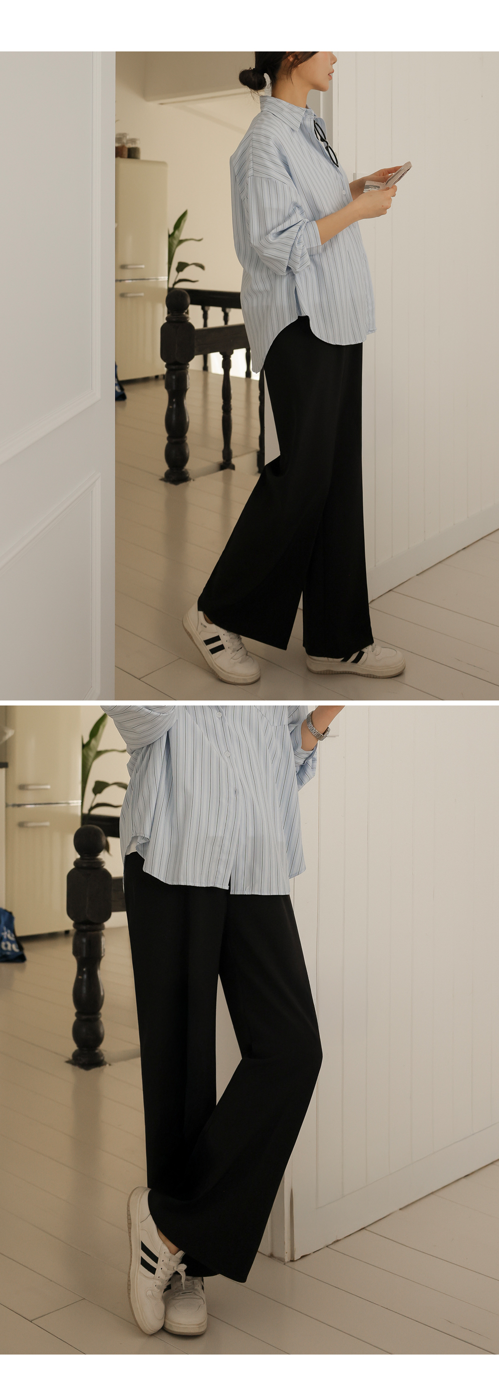 Product information하체 군살을 커버해주는 와이드 핏 디자인 입니다.롱기장으로 다리가 길어보입니다. 부드러운 복대로 배가 편안합니다. 핀턱 주름으로 깔끔한 아웃핏 입니다. 다양한 룩에 활용하기 좋은 슬랙스 입니다. |