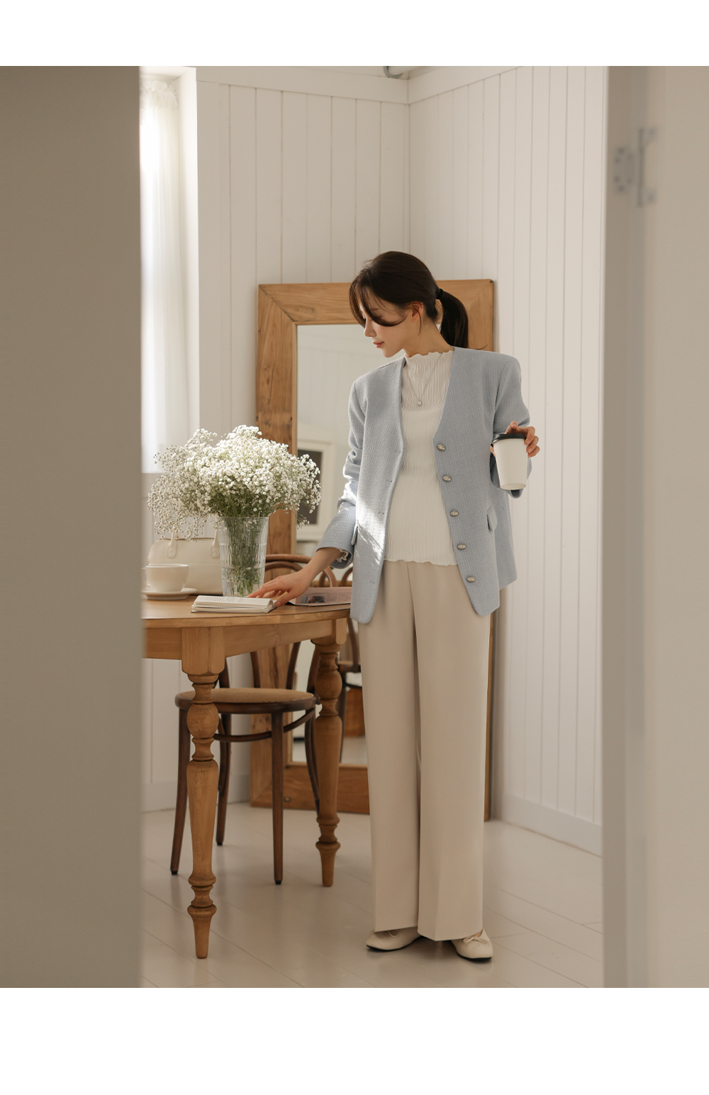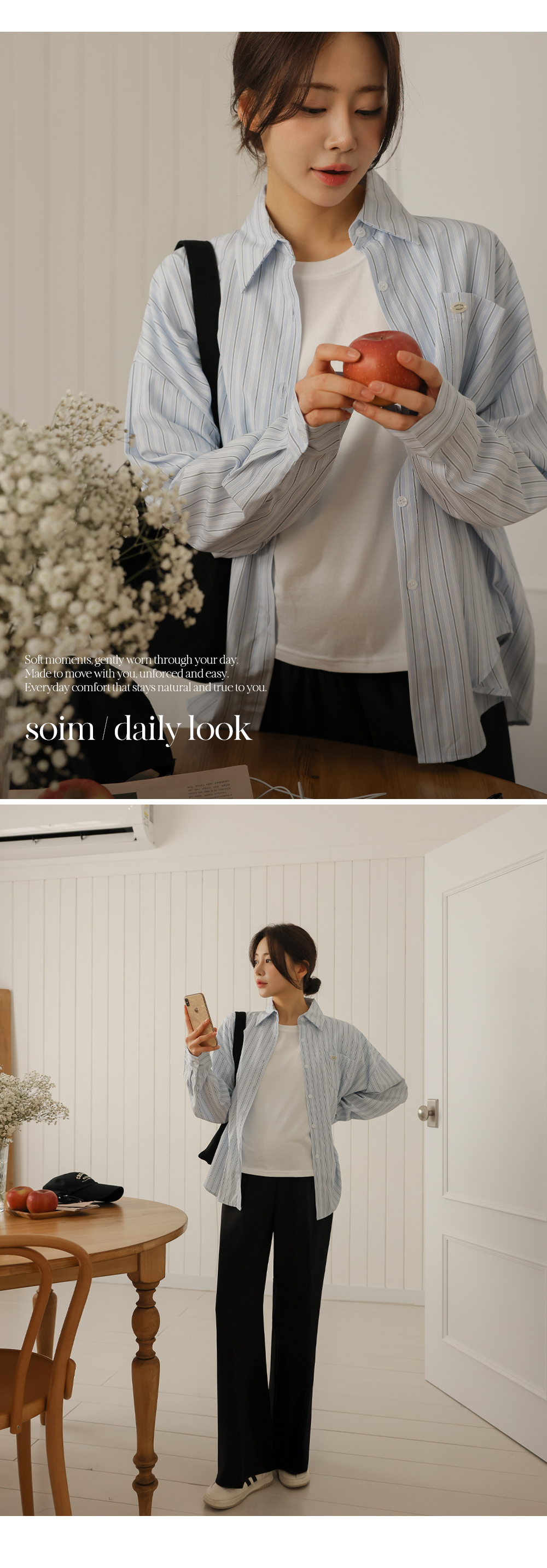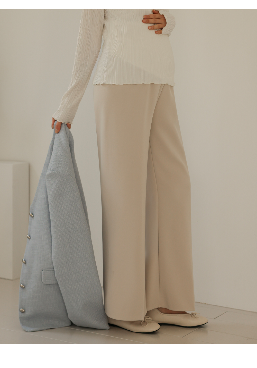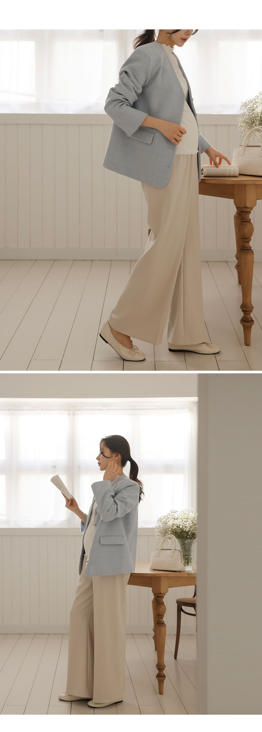 Product information하체 군살을 커버해주는 와이드 핏 디자인 입니다.롱기장으로 다리가 길어보입니다. 부드러운 복대로 배가 편안합니다. 핀턱 주름으로 깔끔한 아웃핏 입니다. 다양한 룩에 활용하기 좋은 슬랙스 입니다. |